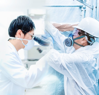 (調査・分析・除去)解体前のアスベスト調査から分析・除去まで自社一貫対応。